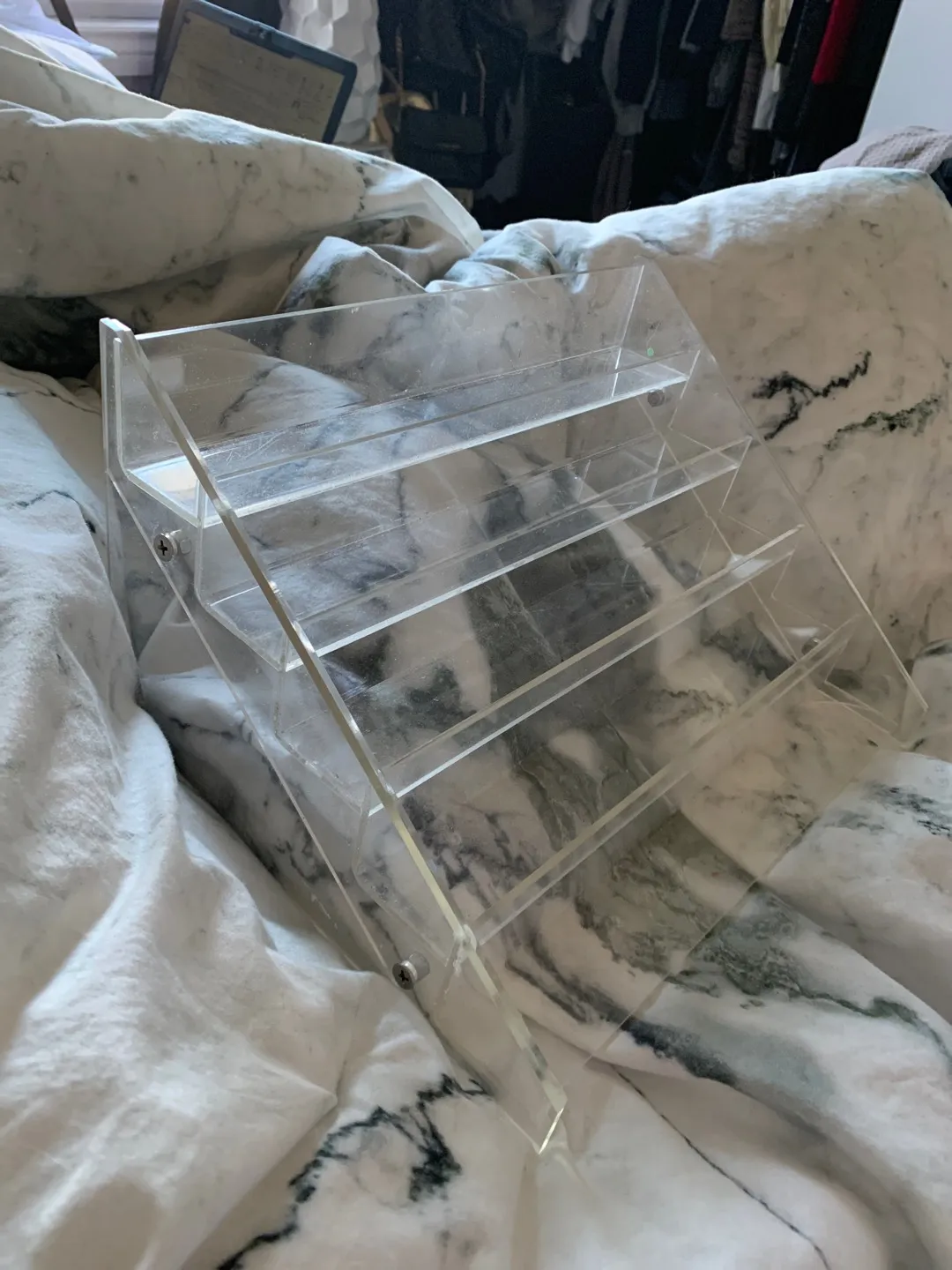 Can also be used to hold sprays or makeup, whatever Has a small crack on side but not even noticeable