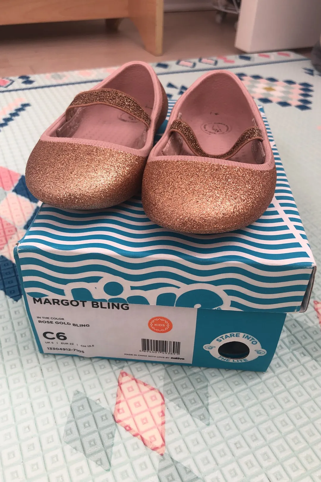 The cutest Rosegold glitter maryjanes. Super lightweight and comfy. Worn less than 5x.