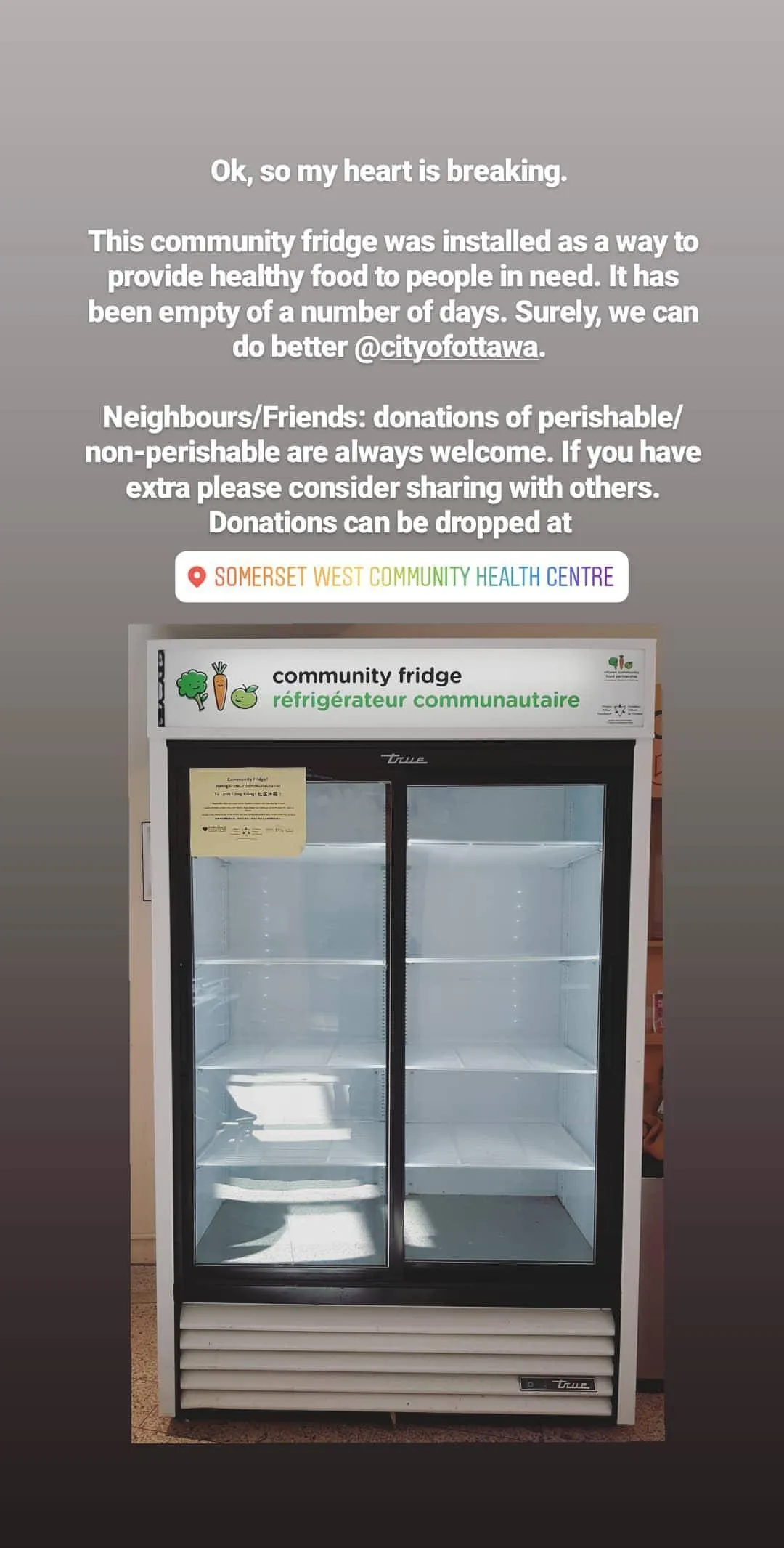 Community fridges are located around the city but this empty one at Somerset West Community Health Centre at 55 Eccles could use some love ASAP!
