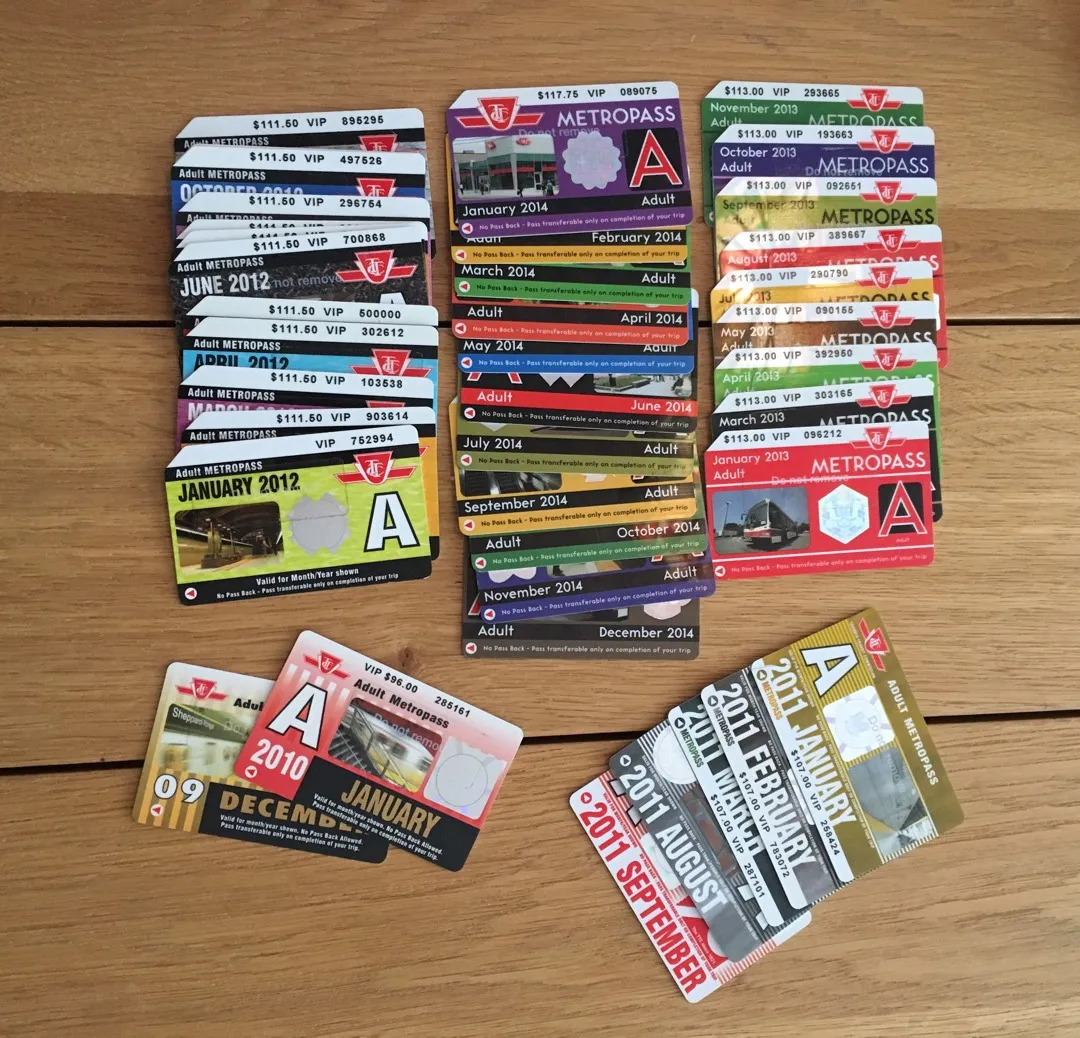 Artists and collectors, I have 38 old TTC metropasses. 2009-2014 Trading them as a bundle only.