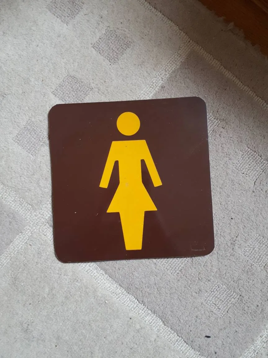Bought at a vintage store and never put up anywhere 8"x8" I stuck paper on the back of the sign, as the old adhesive was sticking to things $20 value
