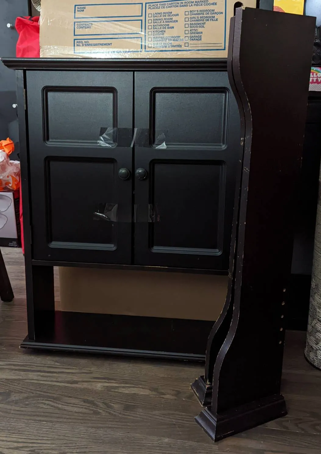 About 6 years old. A bit dinged up, but nothing a wood marker or paint can't fix.