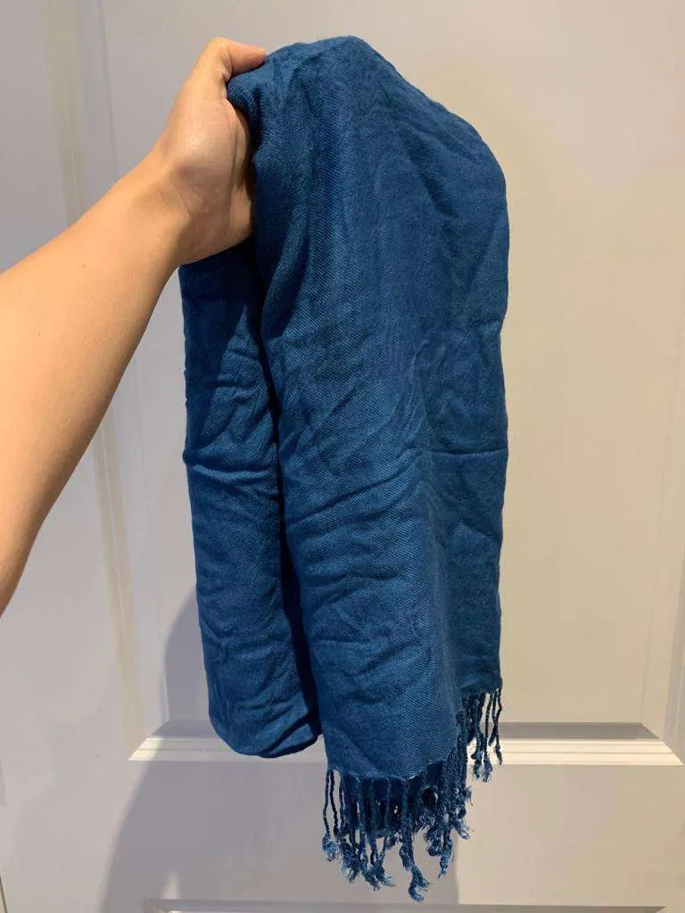 Clearing my closet and this is looking for a new home. Blue pashmina that is fairly light weight which makes it an ideal travel item. In used condition. #eluuWearable