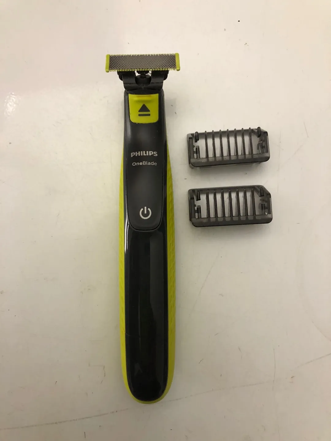 Comes with razor, one blade, 2 or3 attachments, and charger (not shown).