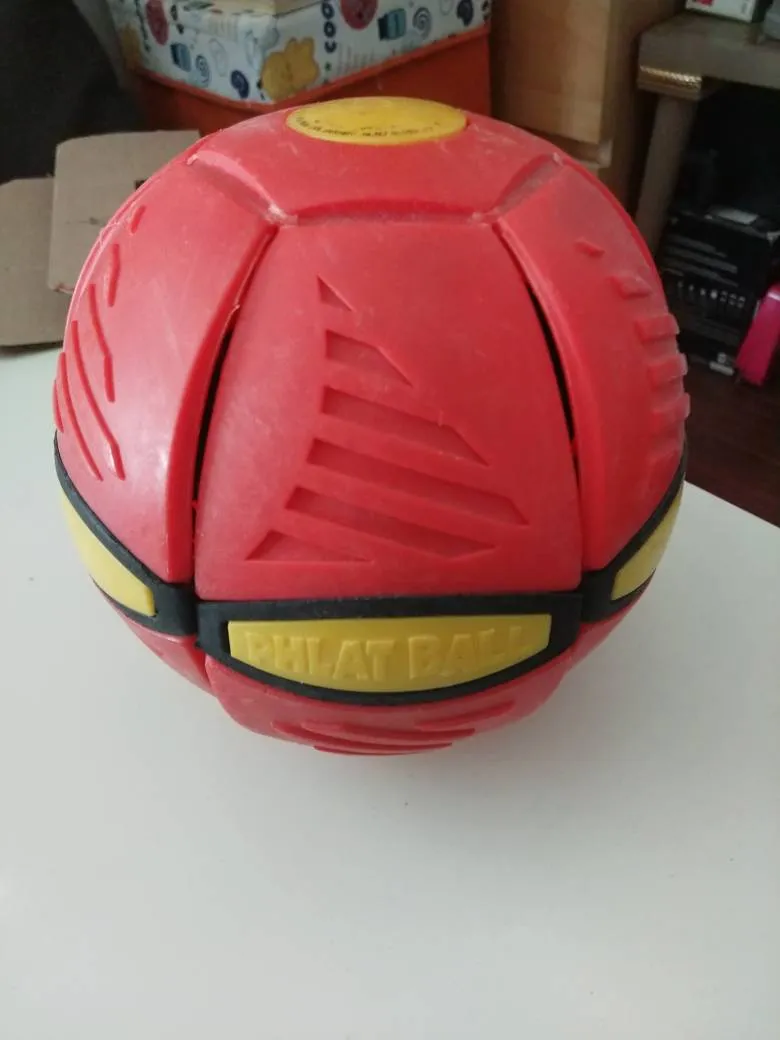A rolly ball that you can step on and flatten. If you get the sucker wet, it can stay flat then pop up.