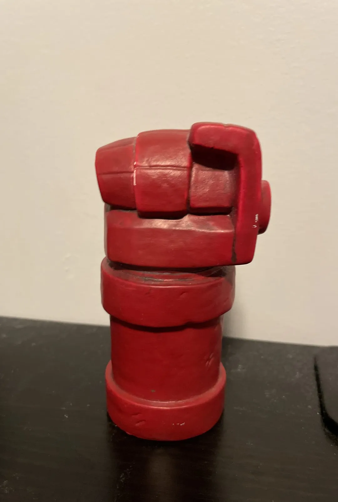 Marvel Hellboy theme piggy bank. Chocolate for scale in last photo. Good used condition, some minimally chipping on bottom, as pictured.