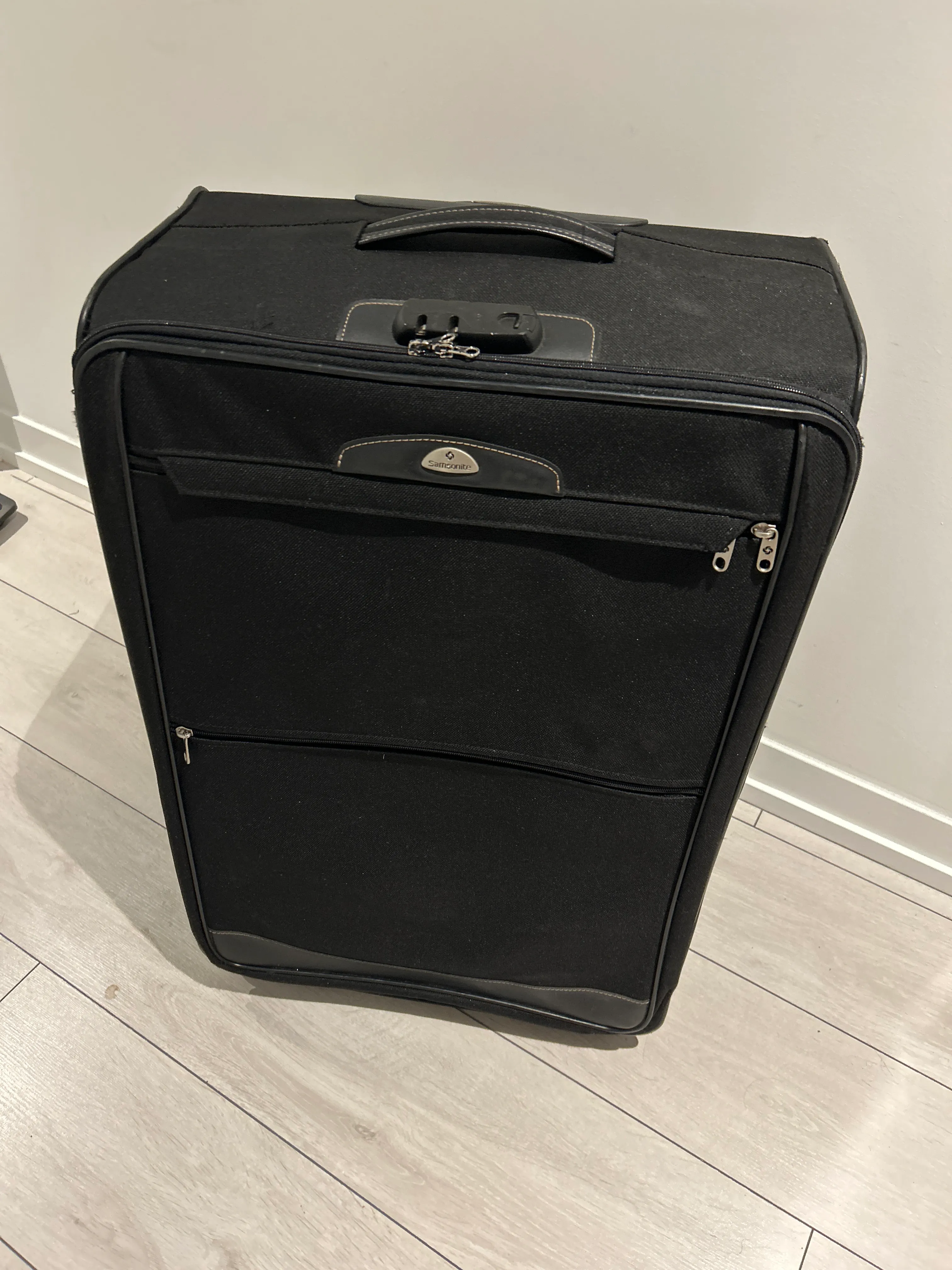 Not a carry-on size, large travel luggage. No damage or functional issues.
