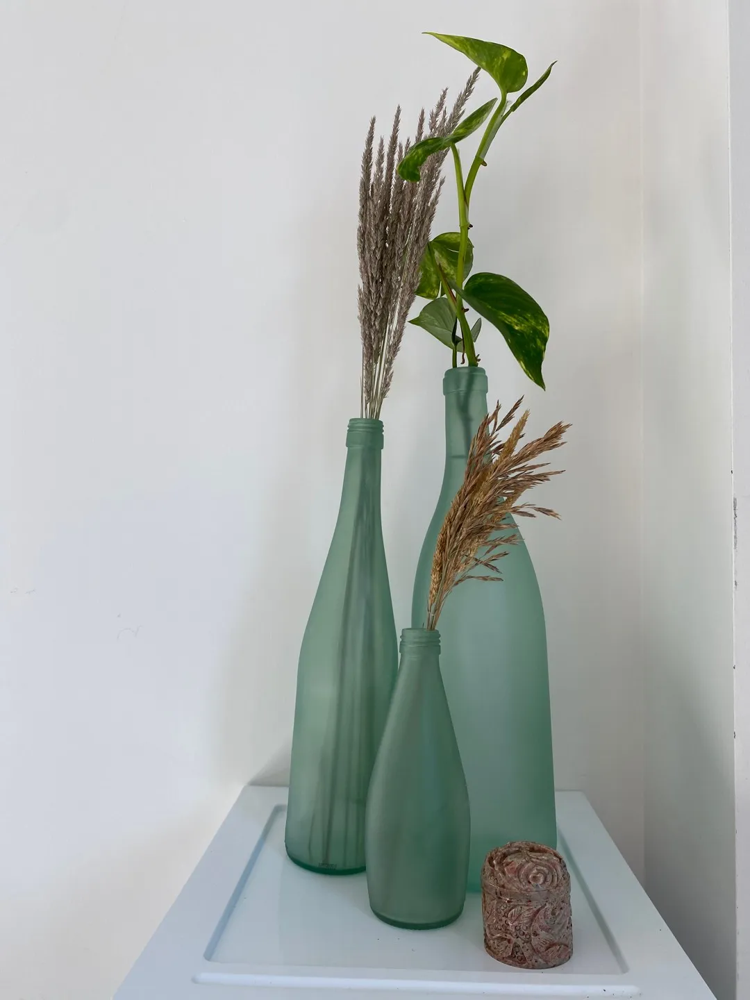These ones pictured are not for trade, but you get the idea! Can make these for bunz as a trade, just using regular glass bottles and then I paint them! They make for really neat decor and have a cool finish. I use glass that I’ve upcycled from my own usage 🙂