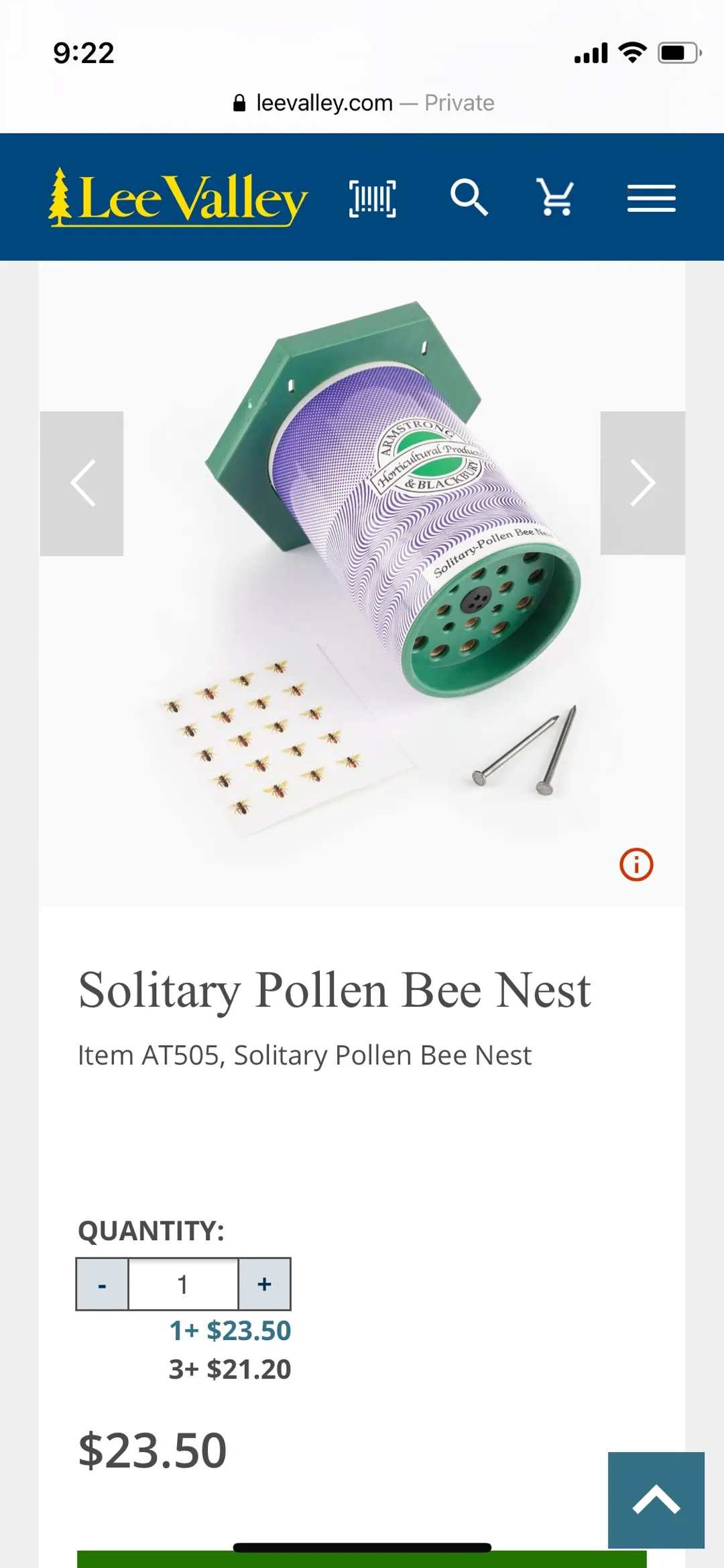 Purchased this from Lee Valley, but no longer have a yard. Brand new with everything you need to set up a little bee nest.