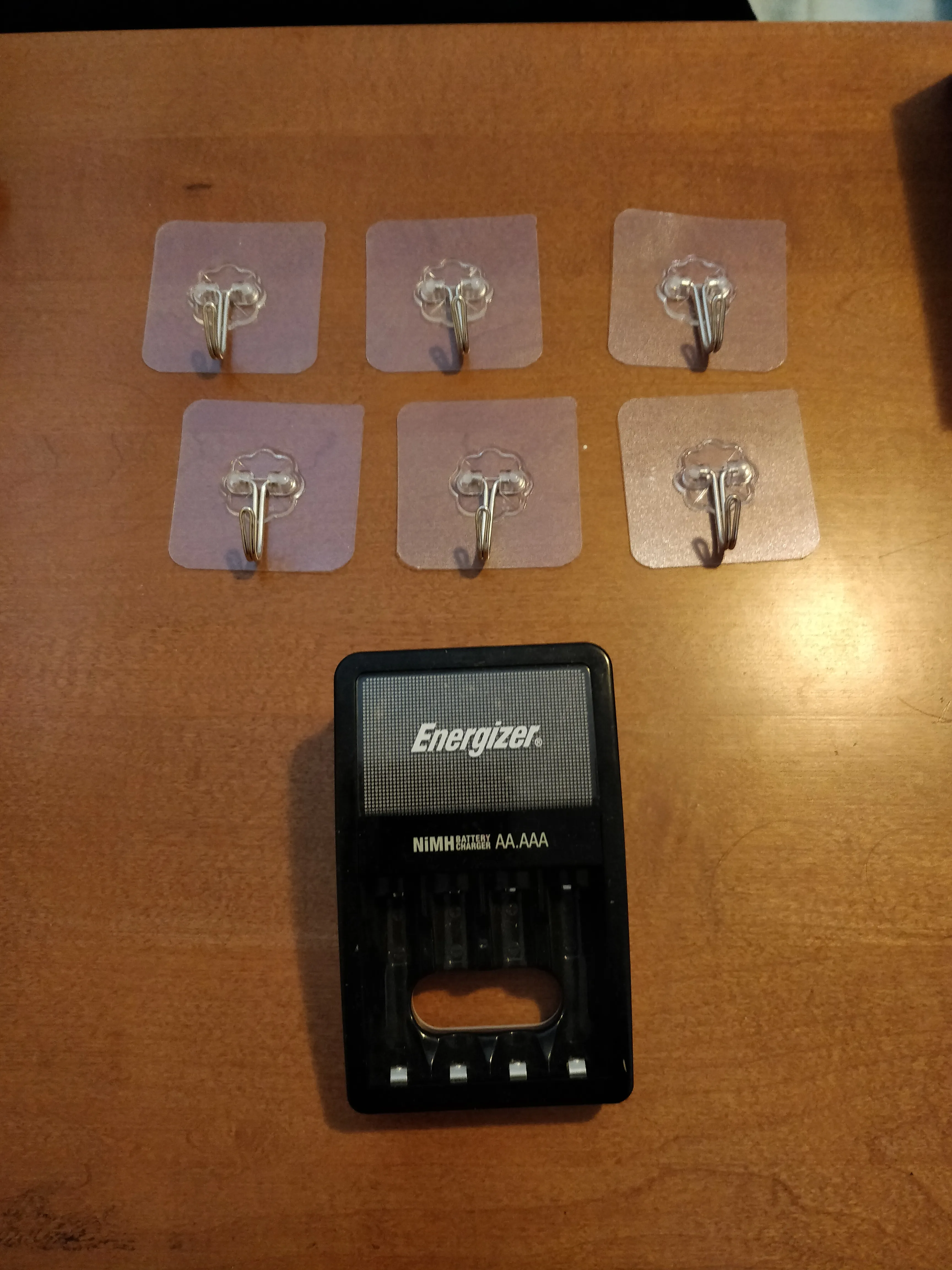 New 6 stick on hooks. Sorry no longer have portable battery charger