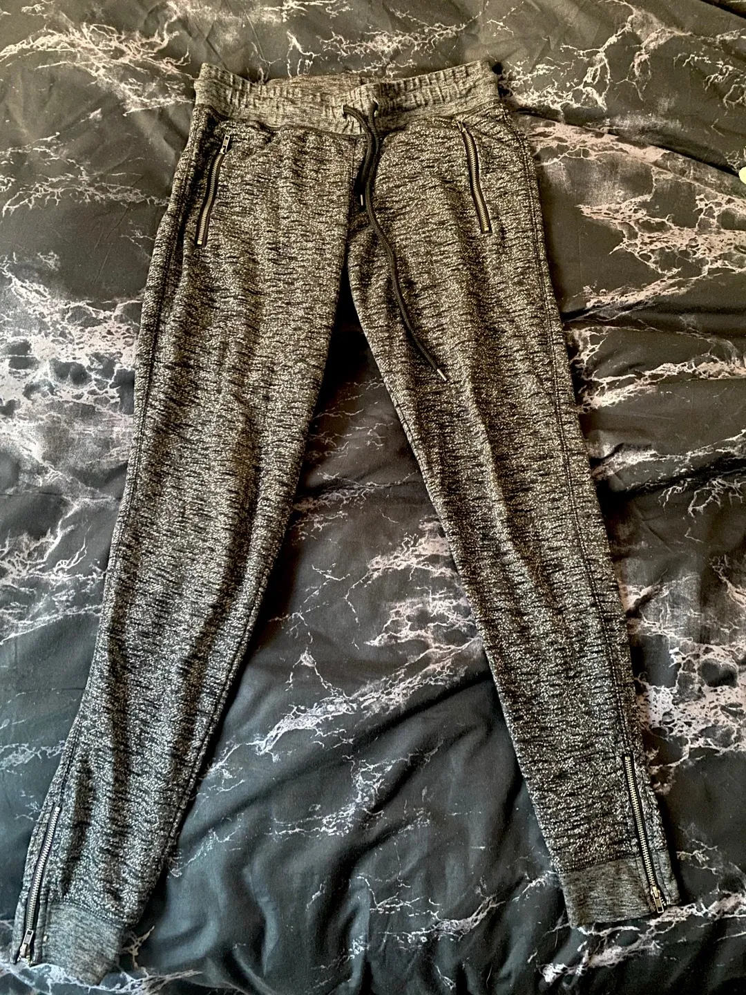 Very comfy! -zippers on the bottom of the “leg” -pockets with zippers -rope cord on the waist -size Small