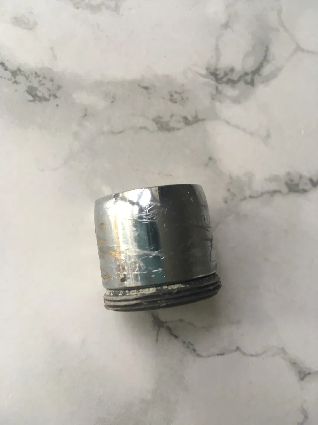 It has lots of nicks/scratches on it (brass underneath is showing) as photos show. Final photo is what a sprayer looks like on a kitchen faucet (is a new one).