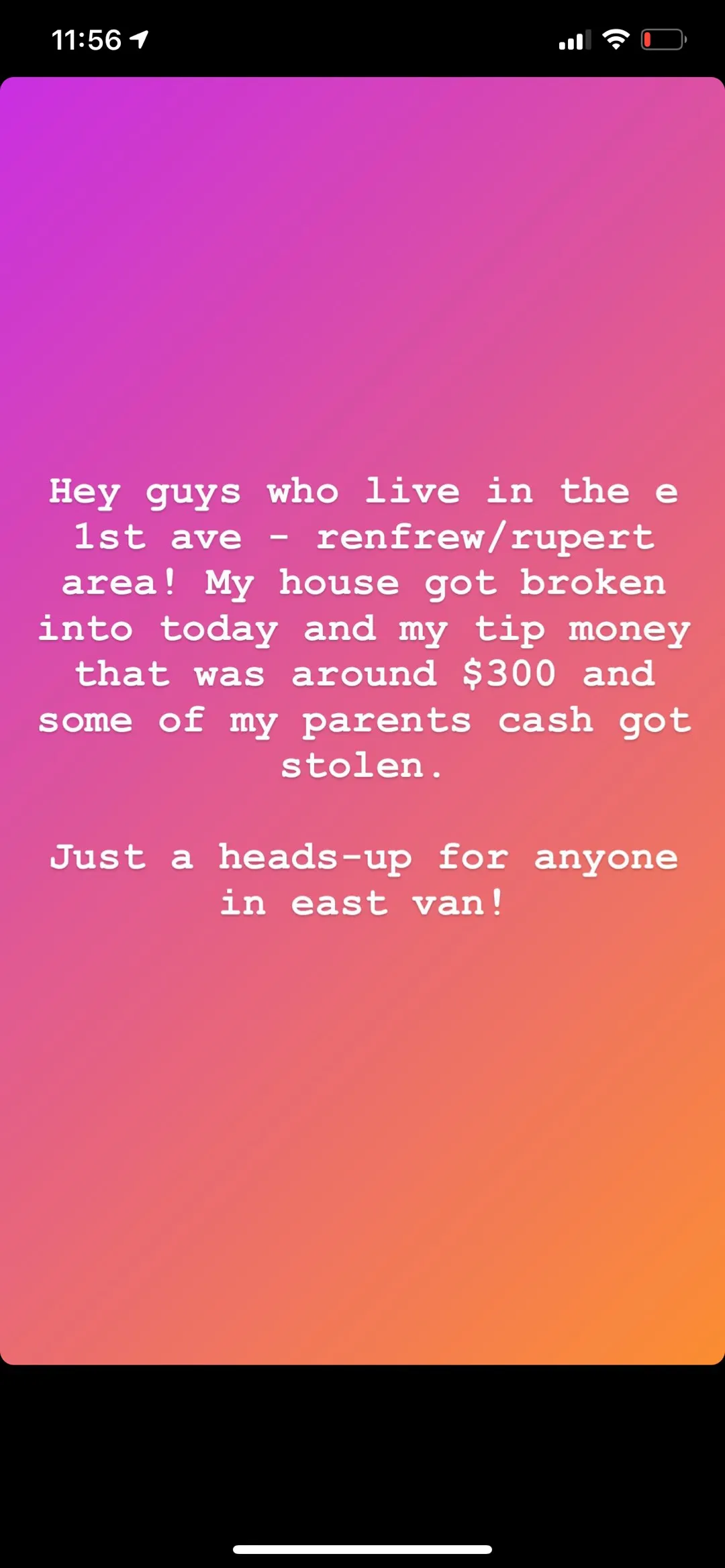Hey guys! Anyone in East Van around the Renfrew/Rupert area, be extra careful as my house got broken into today!