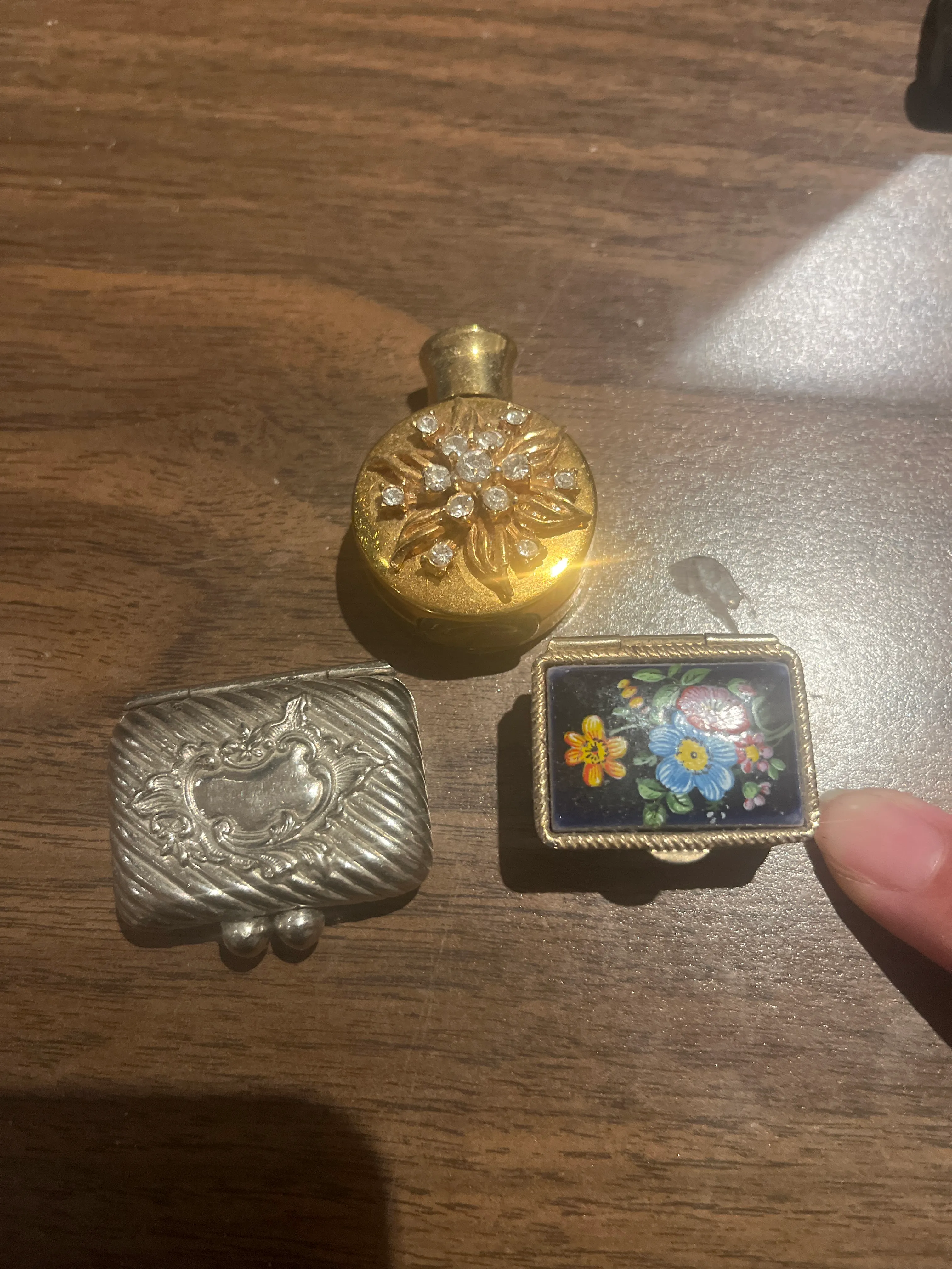 One has ceramic flower insert, the other is lined with felt.