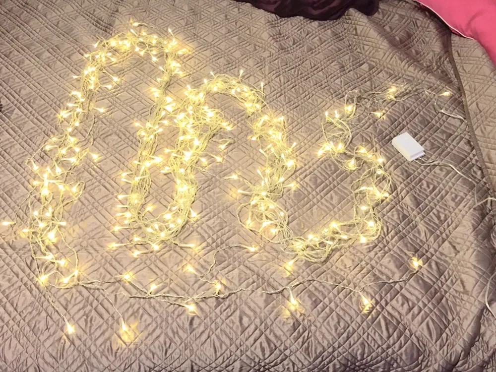 Curtain of lights that measures maybe 8’ x 8’. Great condition and not much use. Has a button to toggle between various modes: flashing, gradually brighter, etc.