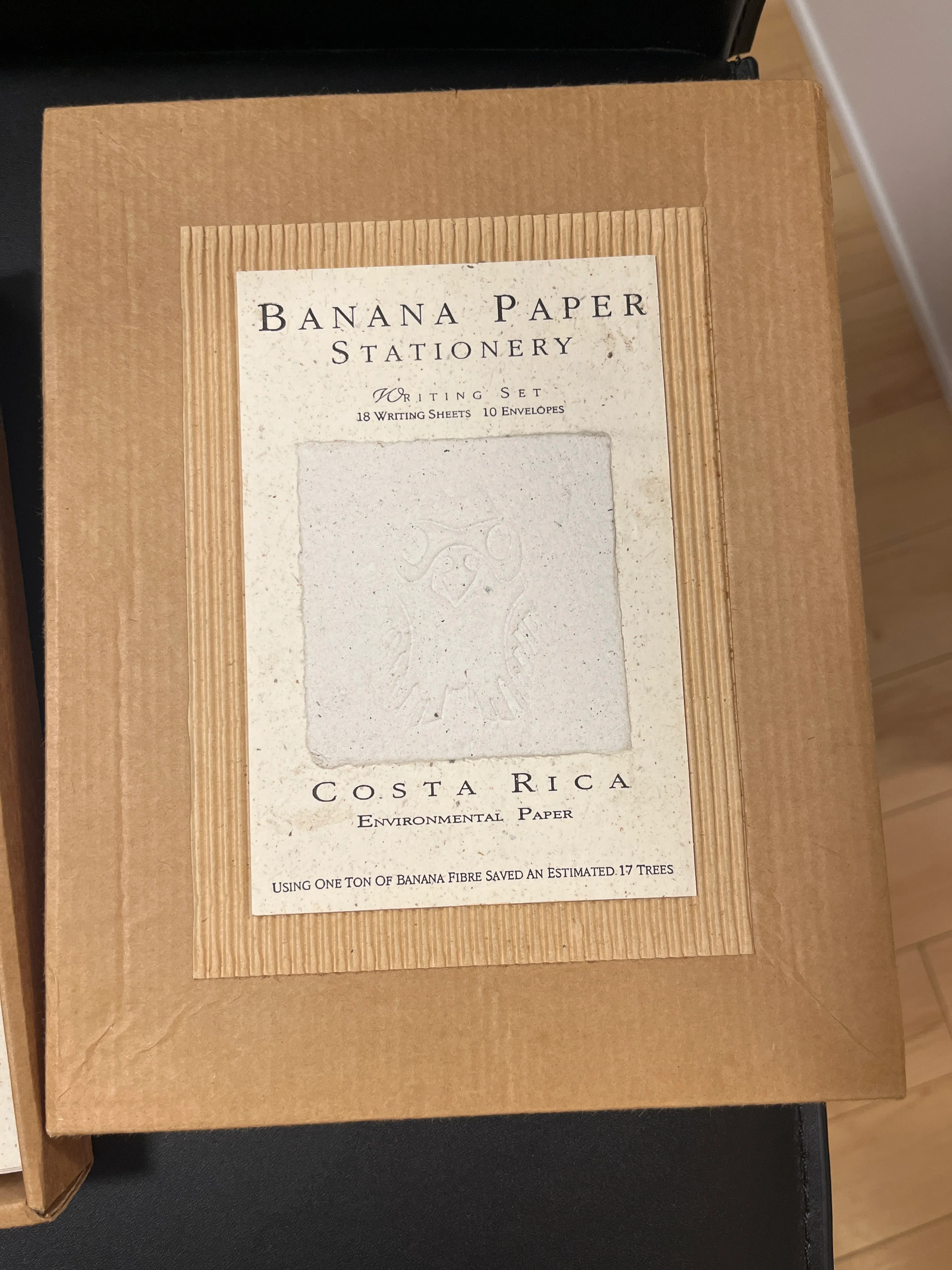 Banana paper stationary from Costa Rica. 12 sheets and 9 envelopes.