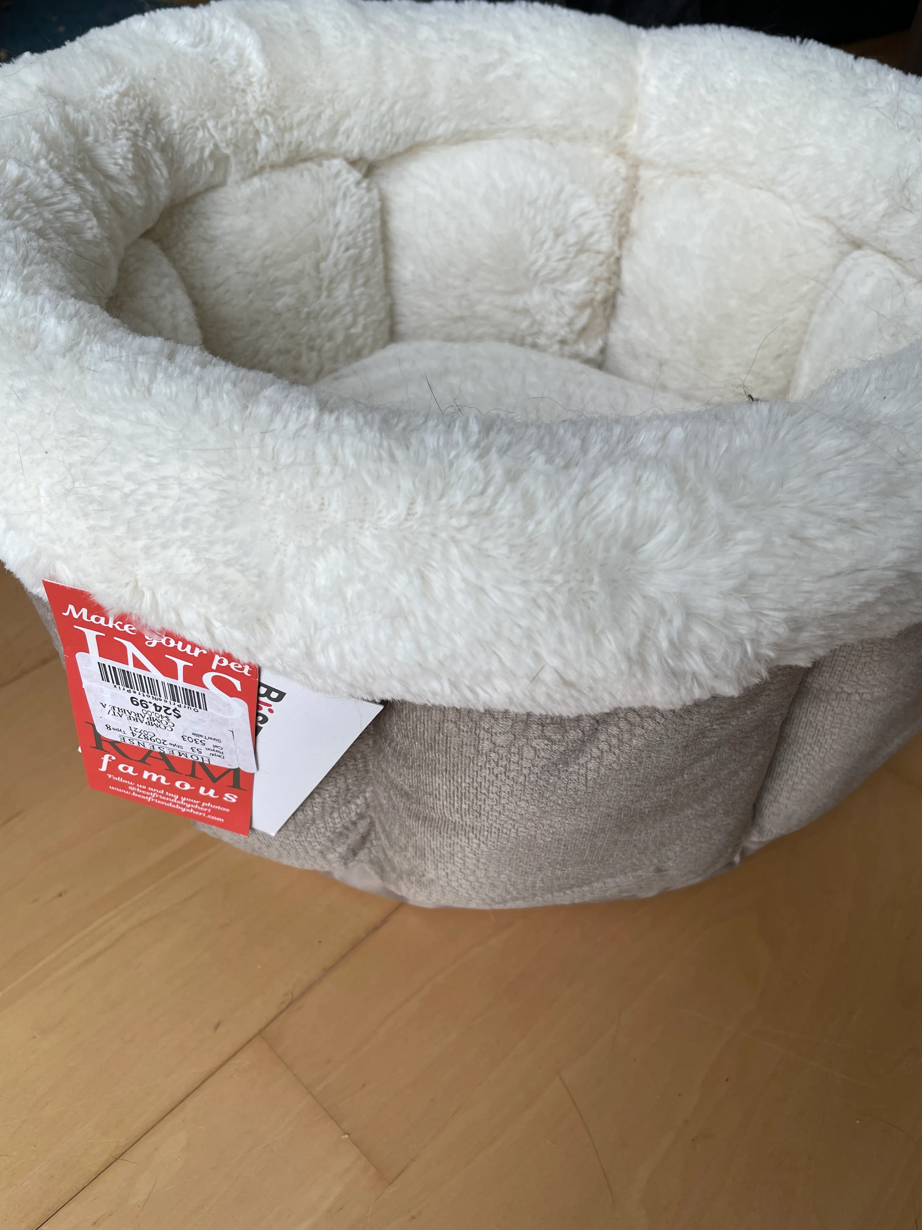 It’s in the name: dog bed, don’t know why I thought my cats would like it. It’s very soft, tags on from homesense. Maybe it would bring your pooch joy!