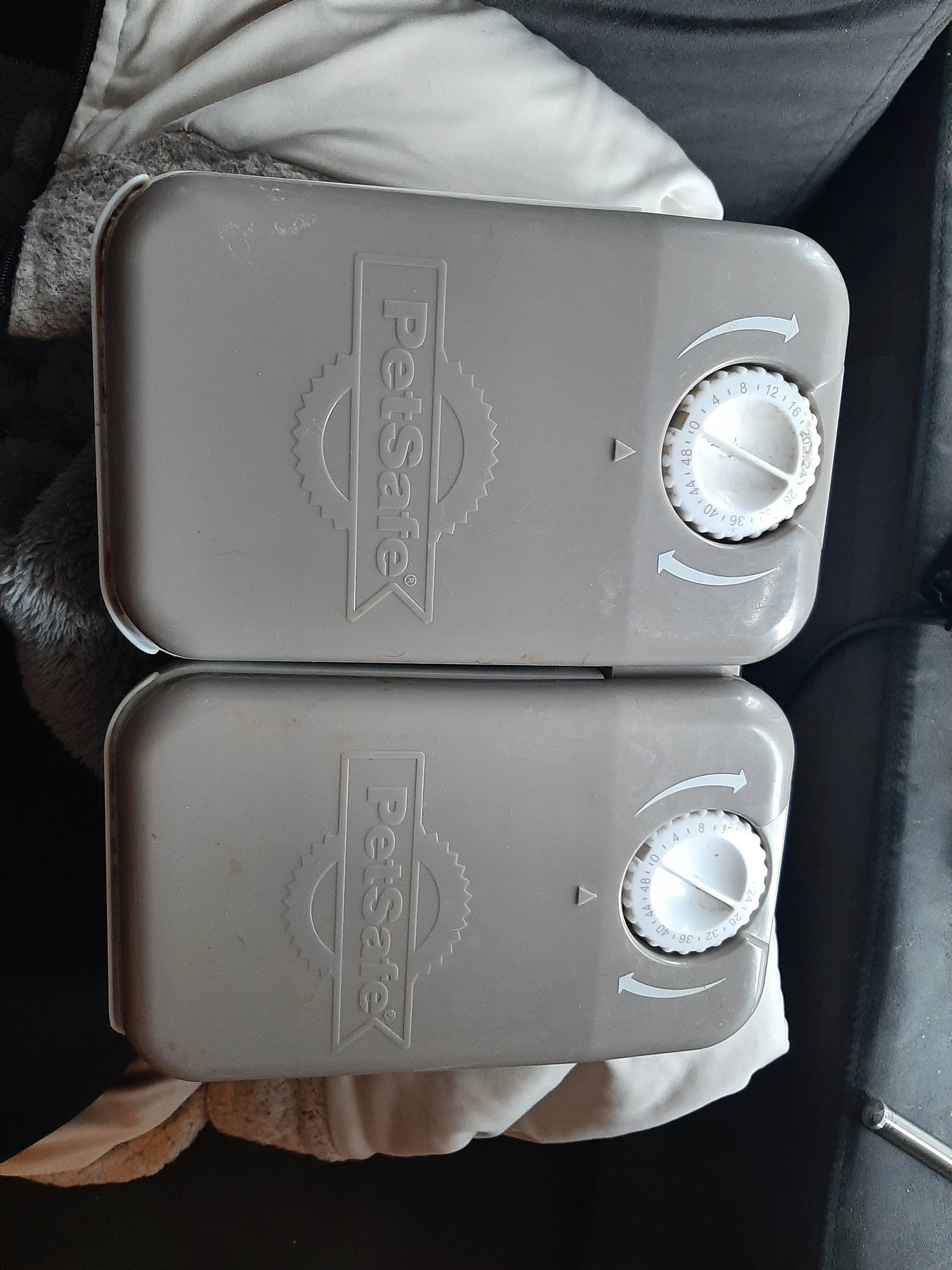 48 hour 2 bowl pet feeder. Good for leaving a cat overnight that cant free feed. Takes one AA battery
