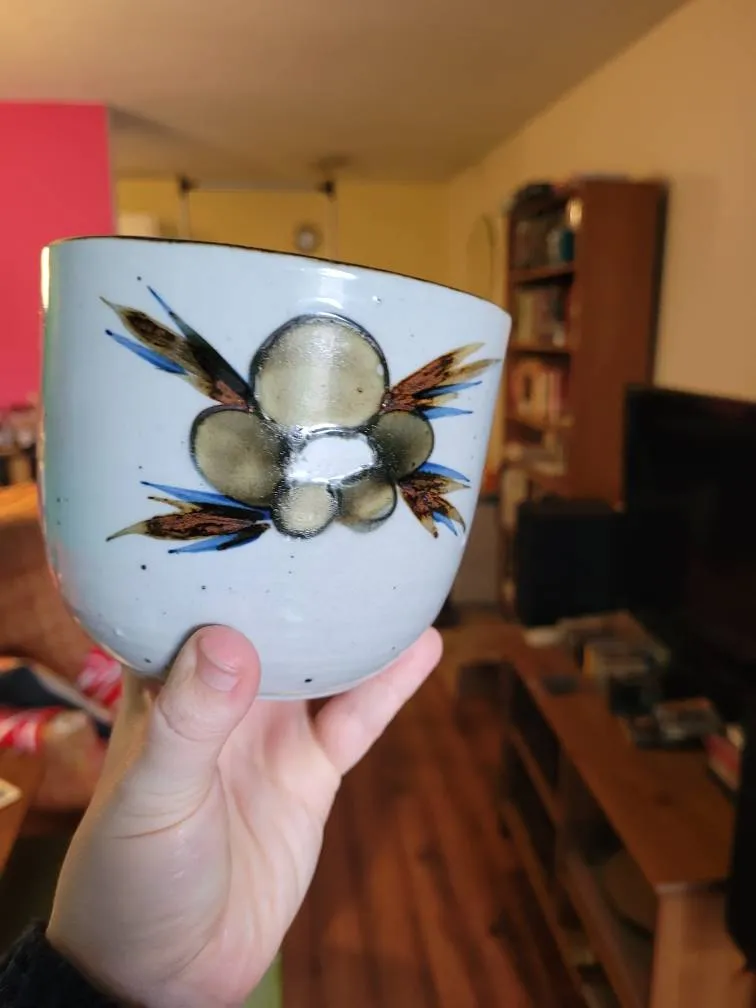 Vintage, small, and pretty. Our cats have squashed all dreams of plants.
