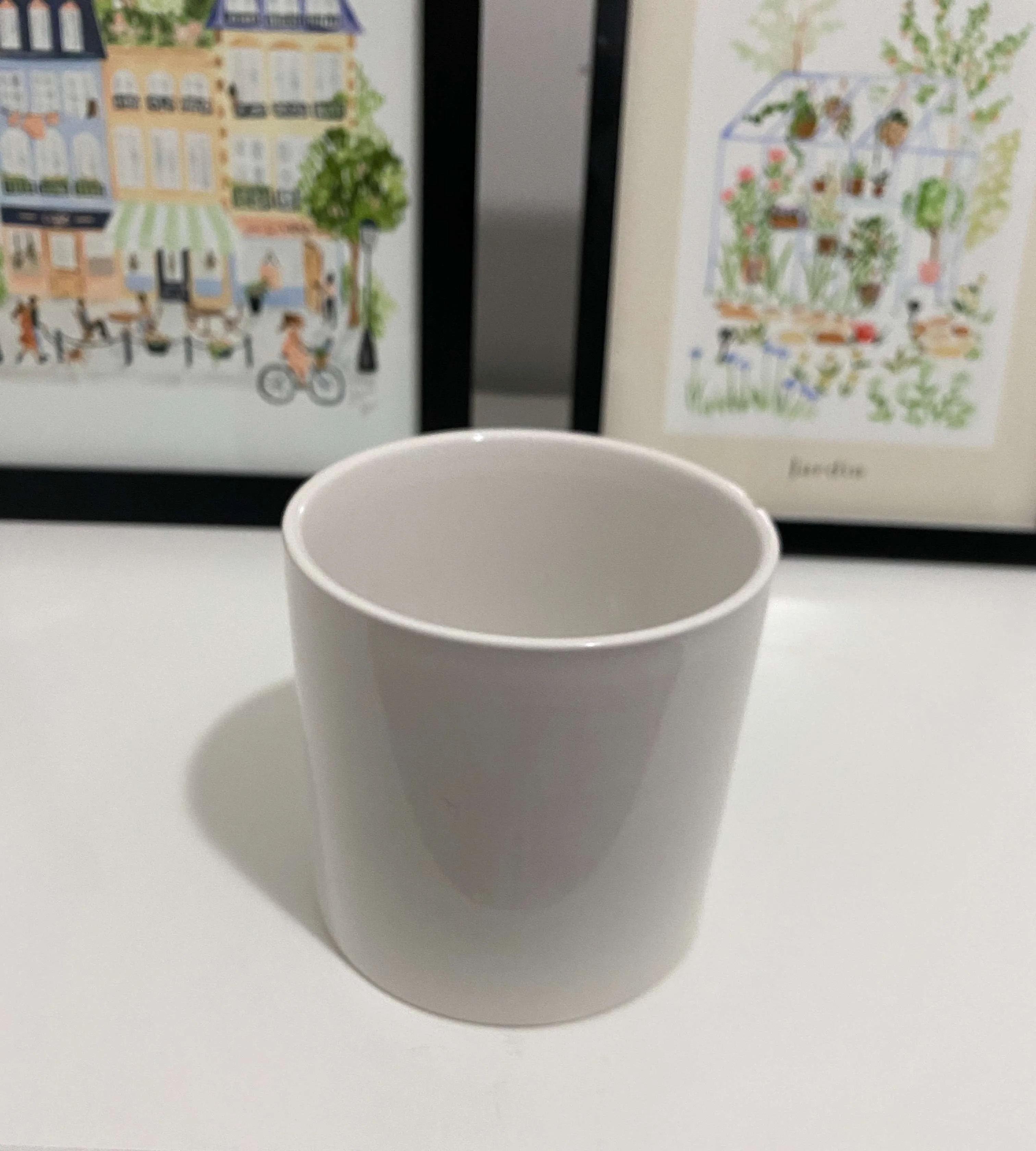 White Ceramic Plant Pot 4". No Drainage Hole. Small chip at top (see second pic)