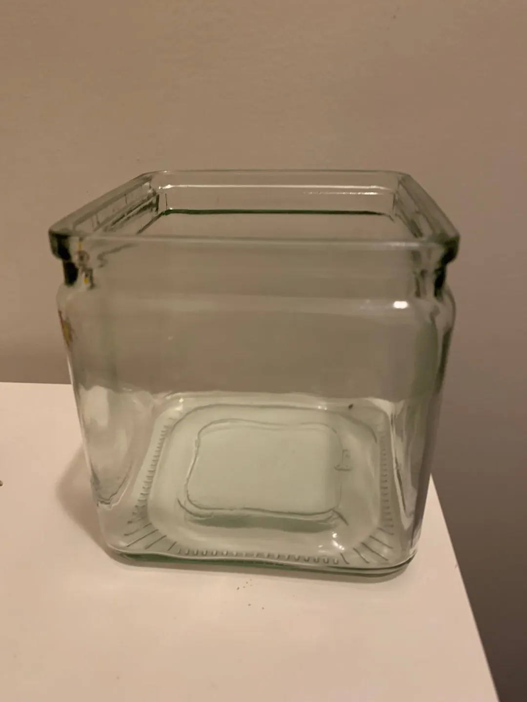 Excellent used condition. Clear cube glass vase. Dimensions are 3.5” L x 3.5” W x 4” H (almost a true cube). Could be used for more than just flowers.