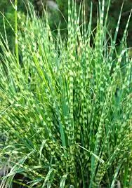 Decorative Zebra Grass - growing 4-7 ft. Does best in full sun. Hardy and will tolerate drought and a wide range of soil conditions. 8" pots approx. 1ft tall.