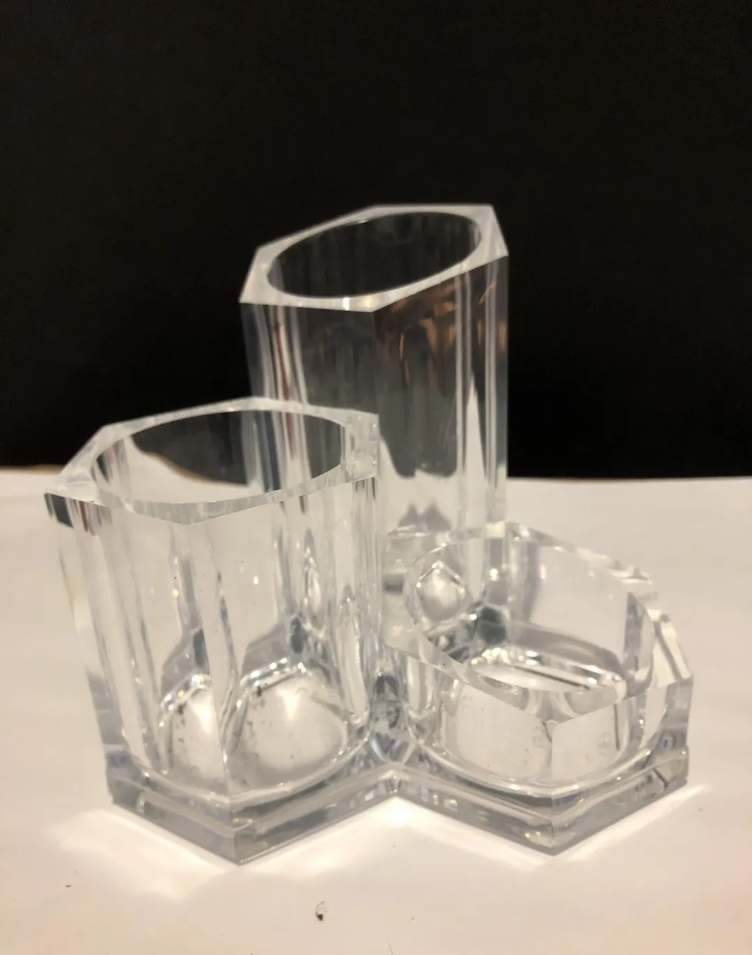 Acrylic pen/pencil holder - used at one point as a stand to hold some little cacti too. Faint scratch on the tallest part, hard to see in photo (and in real life).