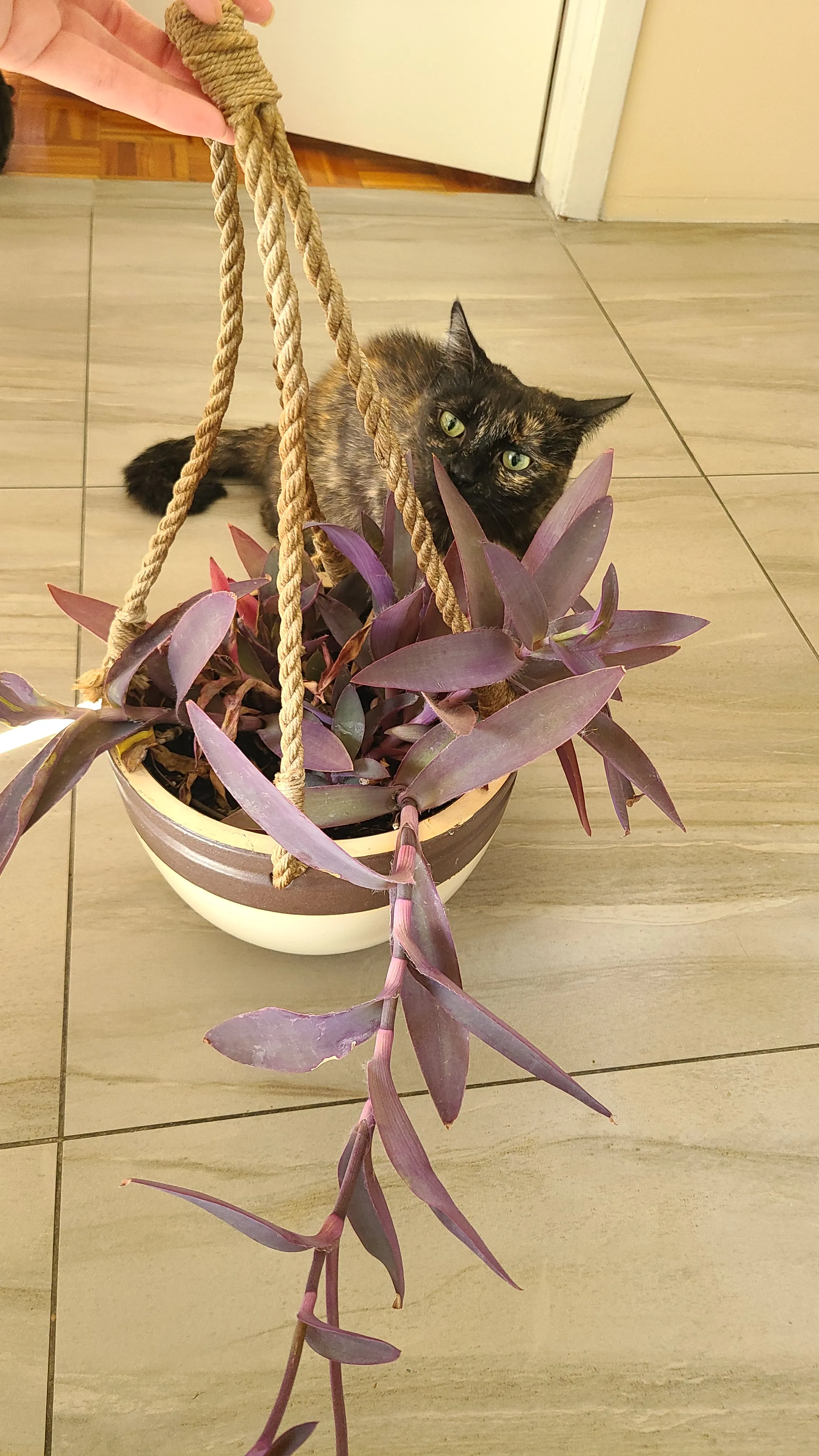 Super healthy, flowering, pot is cream with a brown stripe. Glazed ceramic.
