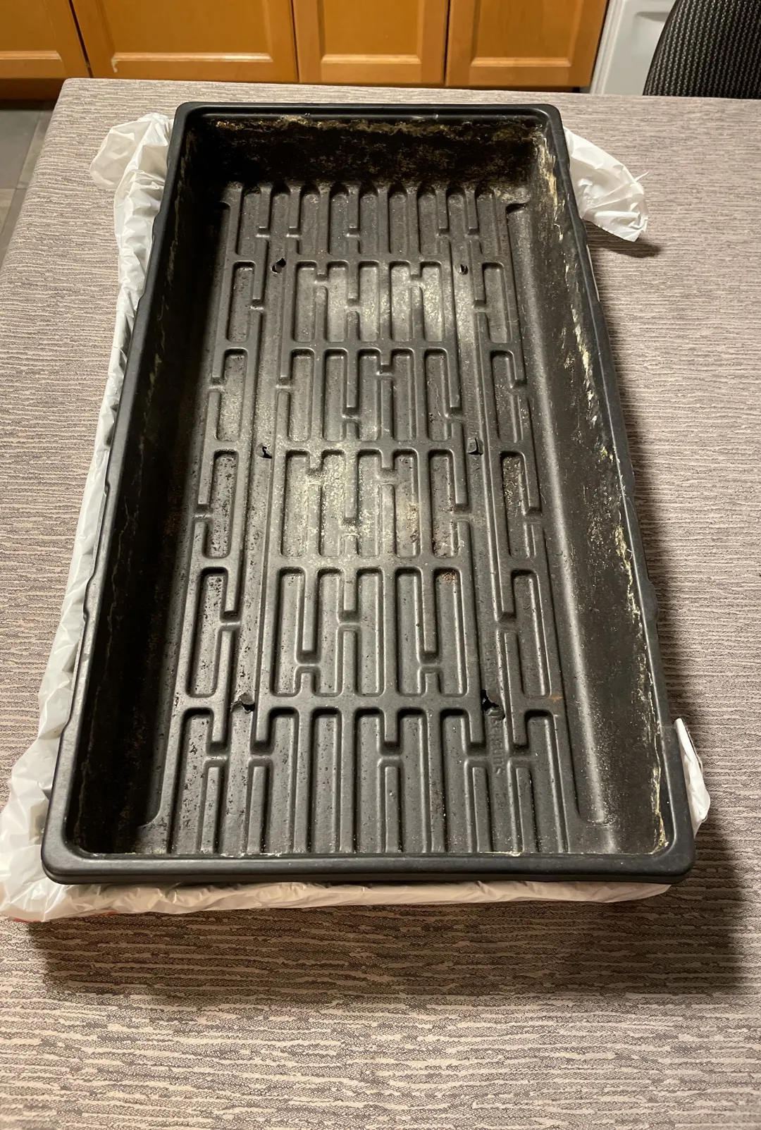 Shallow (maybe 3in) and a bit under 1ft by 2ft. I poked drainage holes in and made an outside box to catch any drips. Ideal for micro greens, small indoor herb garden, or starting seedlings.