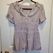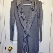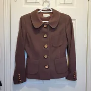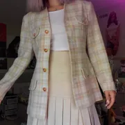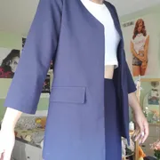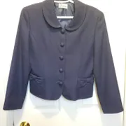 Vintage Blue Blazer & Skirt Set With Bow Details