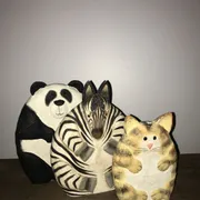 Wooden Panda, Zebra & Cat Ornaments