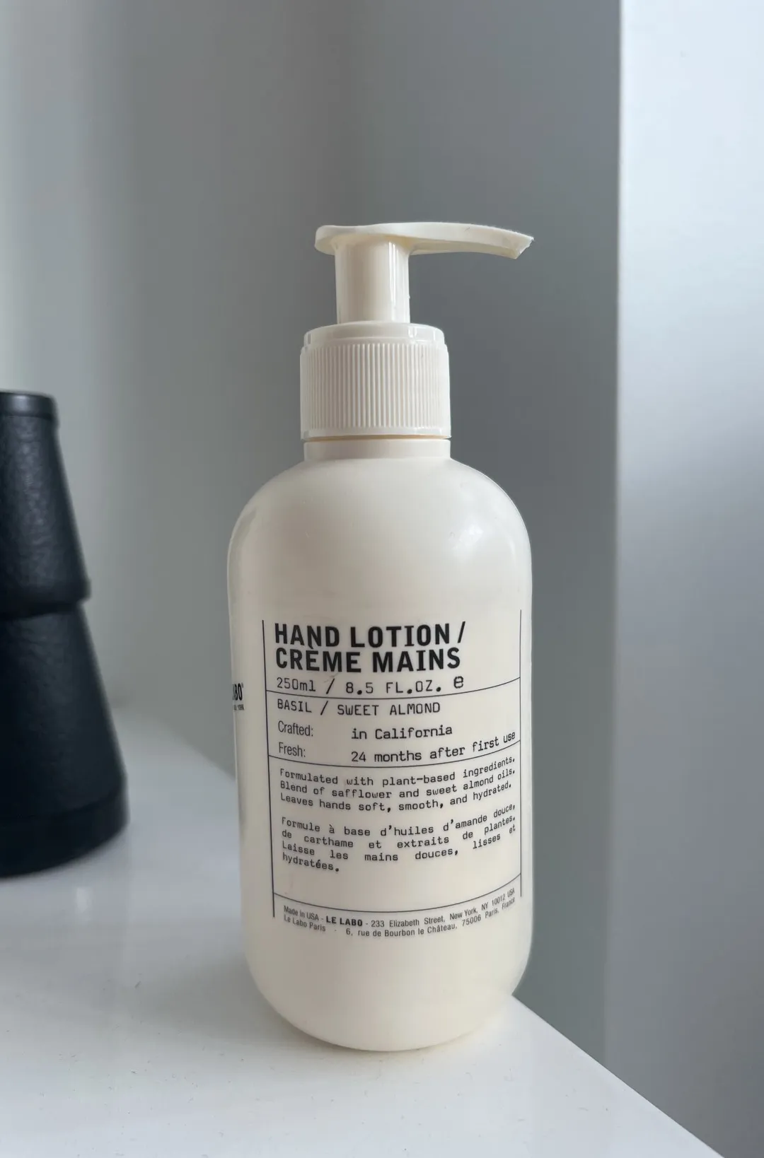 Basil/sweet almond scent. Used a few pumps but I don’t love the smell
