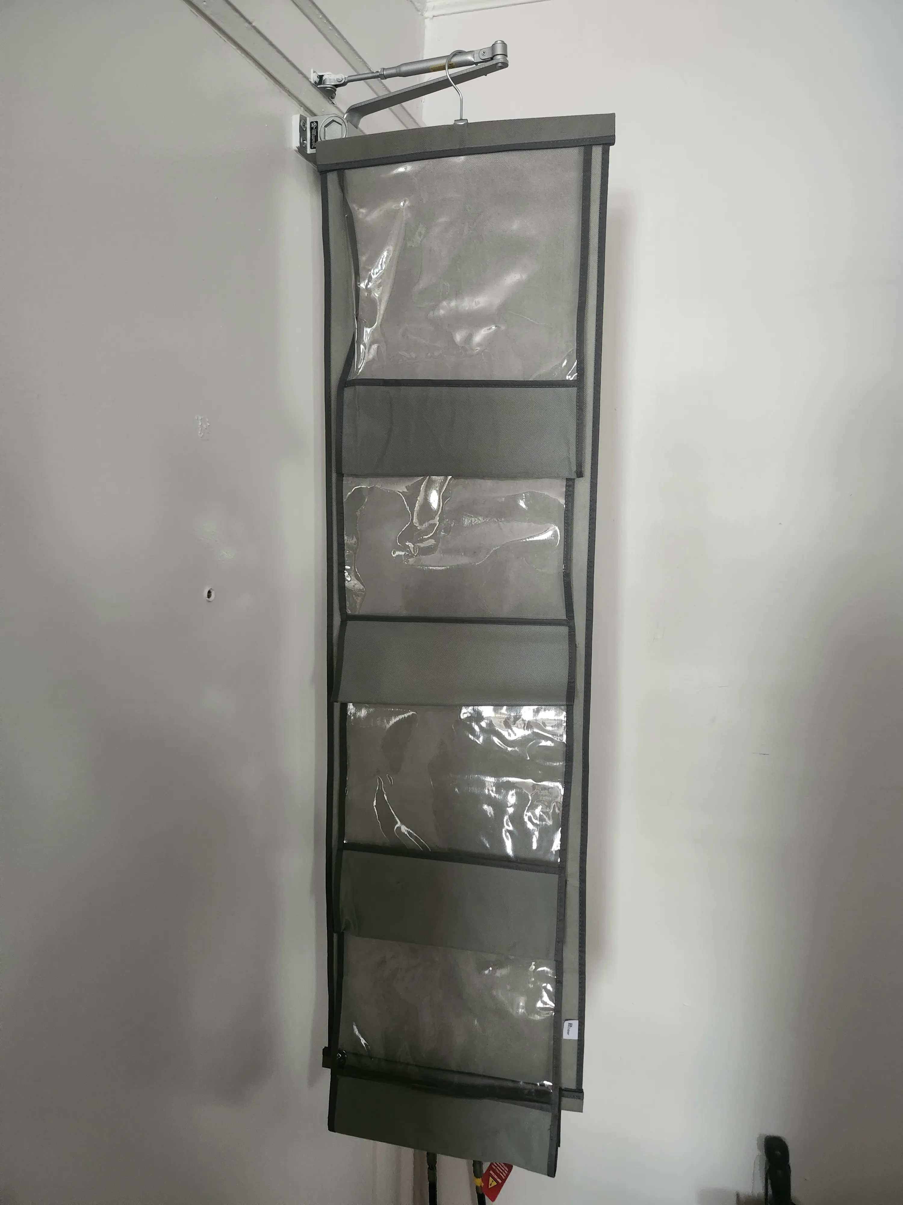 Very practical grey fabric organizer. SGreat space saver.