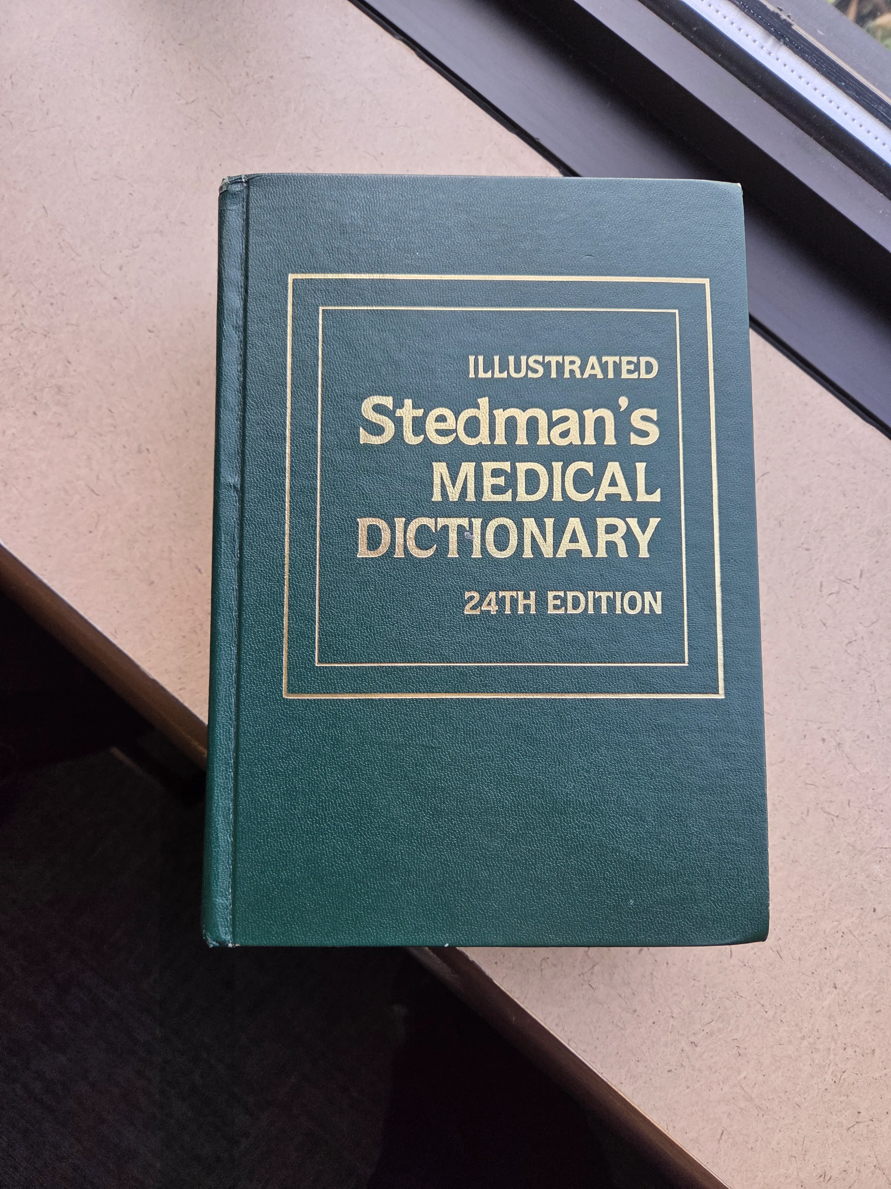 Neat coffee table book or add to home library. Hardcover beautiful Stedman's Medical Dictionary, 24th Edition! It's in great shape and perfect for anyone in the medical field or studying medicine. Has some good detailed illustrations. Last copyright date 1982, with dates back to 1911, neat.