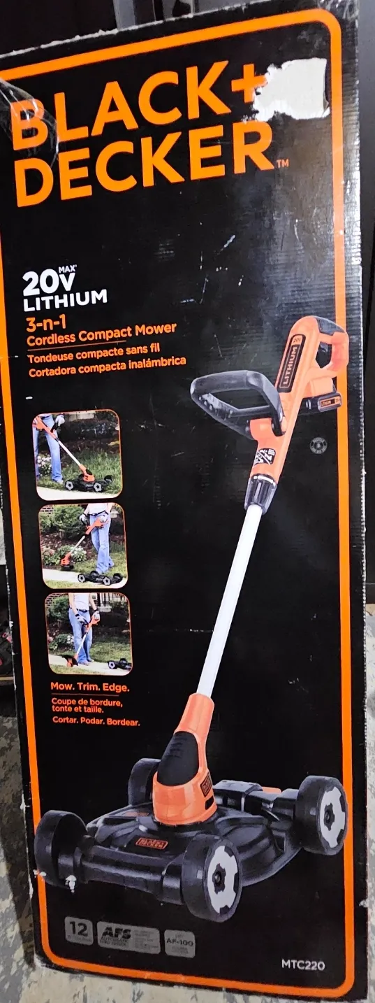 2 used Black and Decker 20V Lithium 3-in-1 Cordless Compact Mower, perfect for small yards! This versatile tool can mow, trim, and edge, making lawn care a breeze. Key features include a 20V lithium-ion battery for cordless convenience and a compact design for easy storage. Comes with 4 Batteries 2 changers and 2 roller mowers.