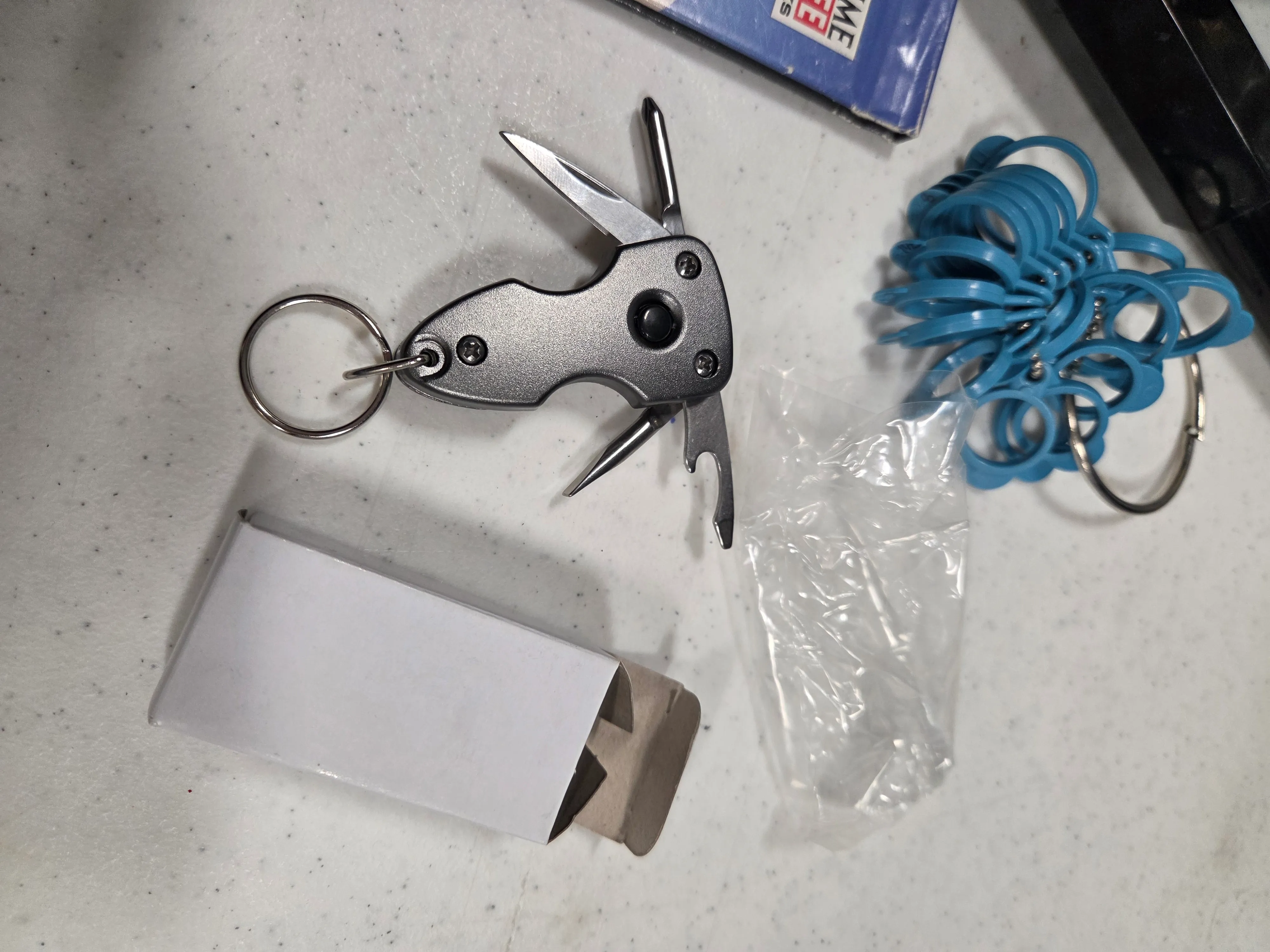 Brand new in box giftable multi tool. It has 2 knives , 2 screwdrivers, a flashlight and a Keychain! Neat. I have 5 left. I would trade individually at 500 Carlingview drive Toronto during monday to friday 830am to 430pm by appointment. Check my iso lists for what I would trade for them!!