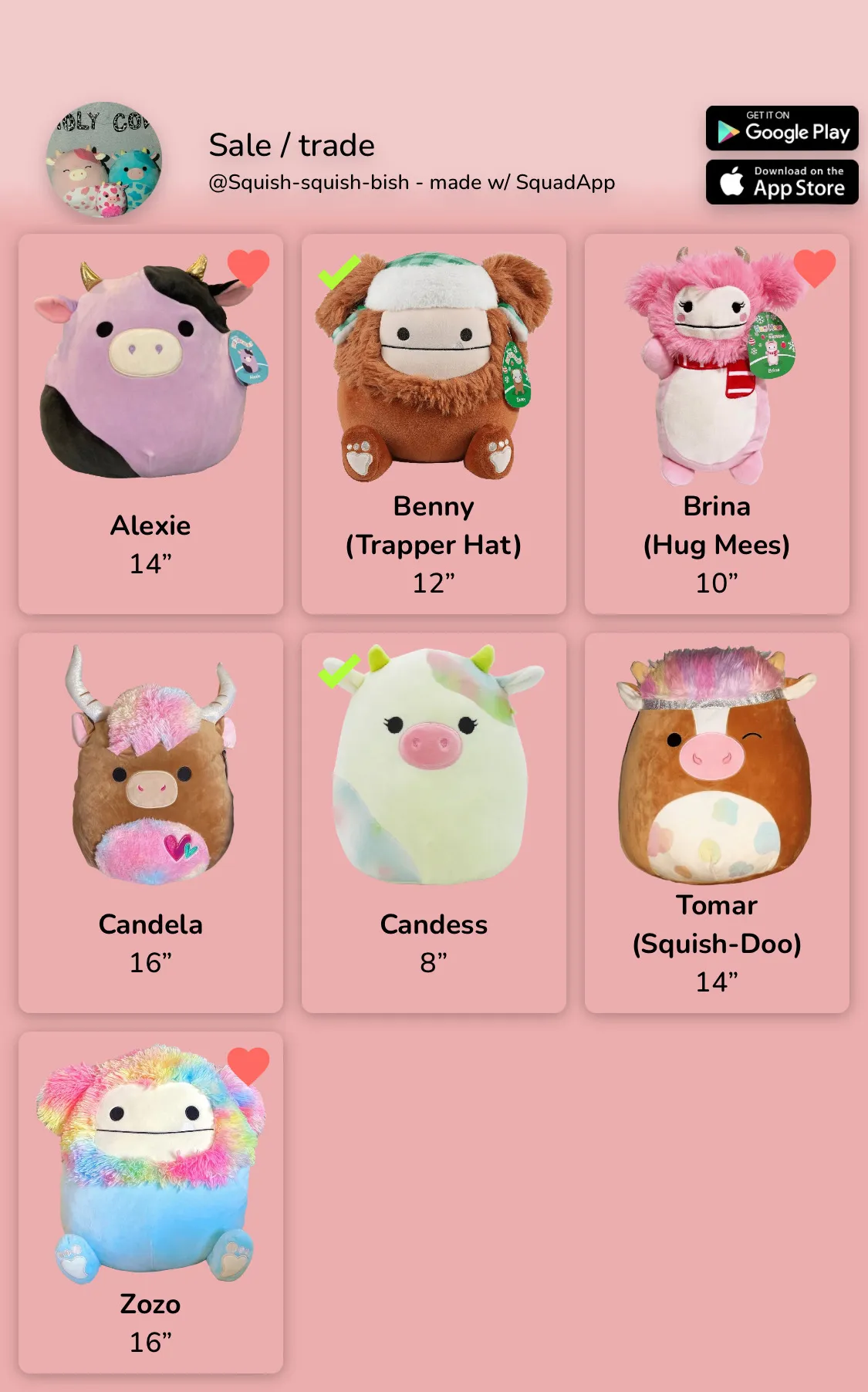 Looking to trade these squishmallow’s for cow squishmallow’s